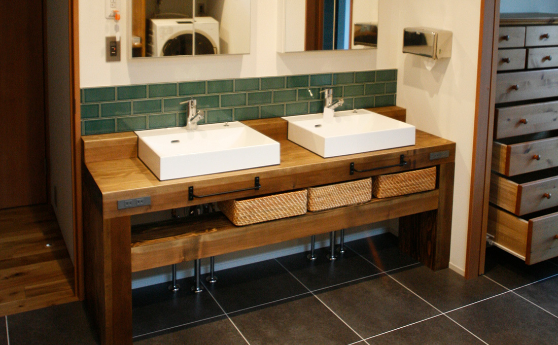 ちょっとした建具やインテリアで、印象は大きく変わるもの。既製品のデザインやサイズに満足できない、そんな時は造作もします。収納棚や手すりはもちろん、洗面台やキッチンまで…。照明などのインテリアも、さまざまなルートから気に入っていただける物を探します。
